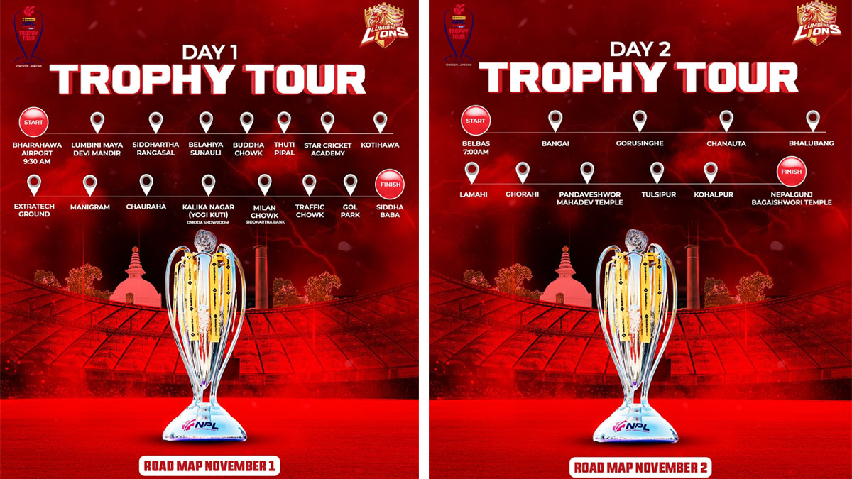 नेपाल प्रिमियर लिग (एनपीएल) ट्रफी टुरको दोस्रो चरण लुम्बिनीमा सुरु गर्दै छ। लुम्बिनी लायन्सले शनिबार र आइतबार टुर आयोजना गर्ने छ।